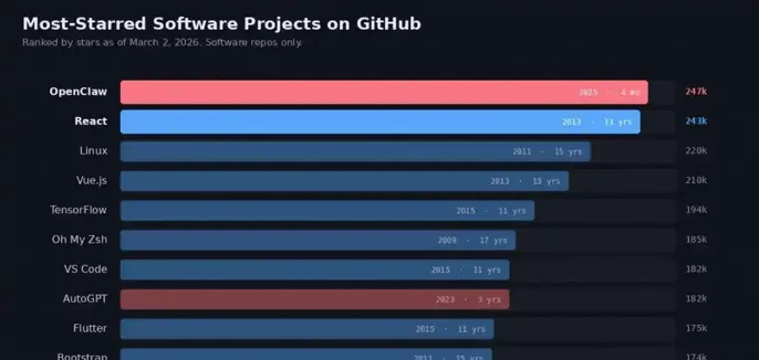 最近OpenClaw爆火!以28万GitHub星标超越Linux,爬上了开源世界的王座!