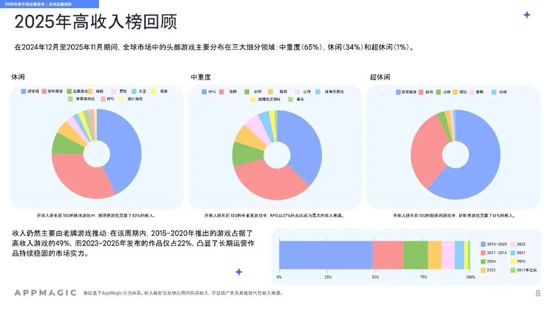 2025年度手游运营报告(附下载)移动游戏细分市场在过去两年中,在下载量和收入方面均呈现出稳定但逐渐放缓的增长趋势。