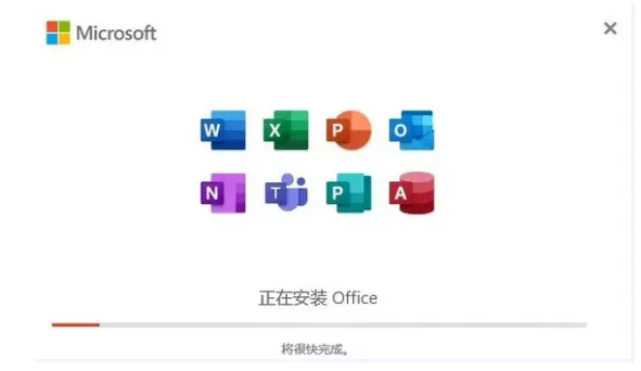 2,等待软件安装。(相关组件已经下载好,显示下载应用实际是在安装Office,耐心等待安装完成即可!)