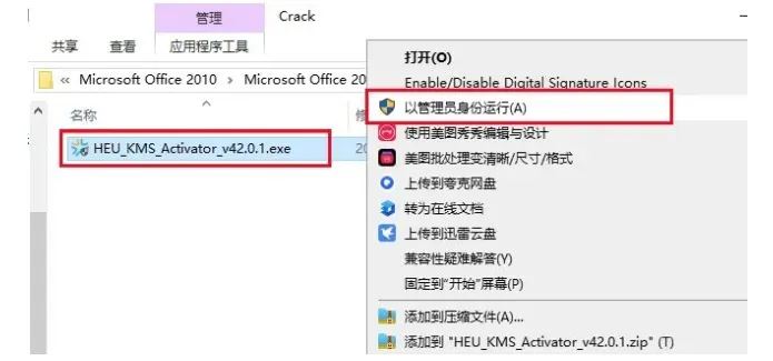 5.右键选择【激活工具】文件夹打开。(若激活工具文件夹是空,需关闭杀毒软件和系统防火墙后重新解压安装包。)