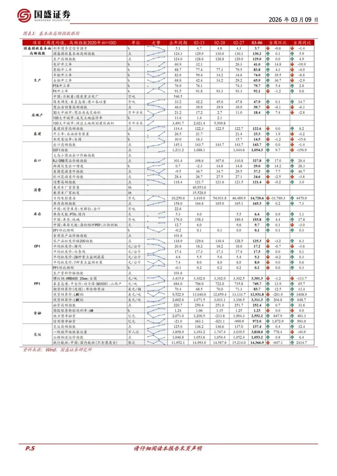 本次基本面高频数据更新时间为 2026 年 3 月 2 日-2026 年 3 月 8 日: