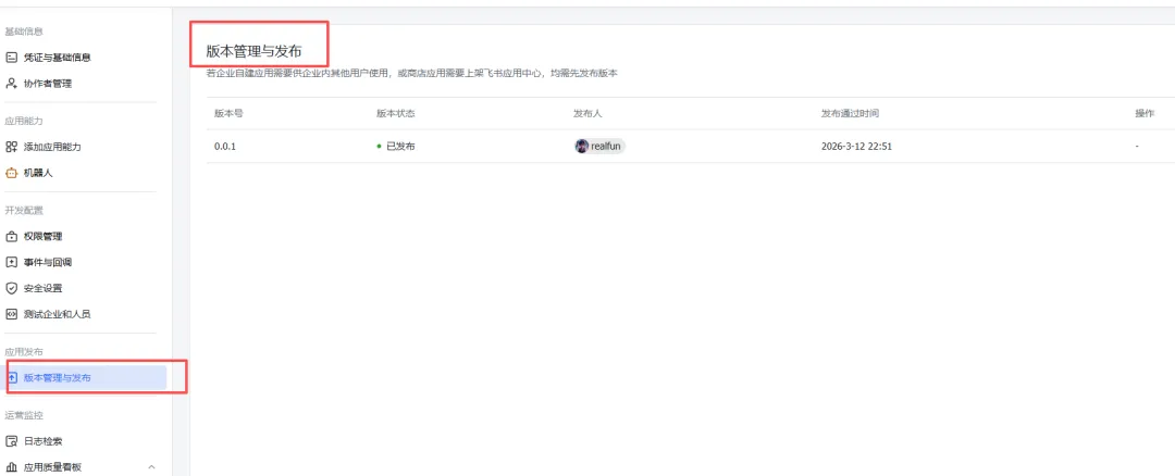 在版本管理与发布页面创建版本
