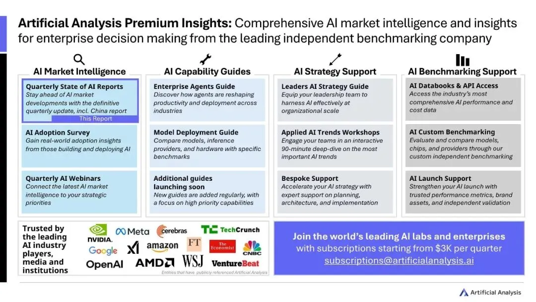人工分析(Artificial Analysis)是领先且独立的人工智能基准测试与洞察服务提供商。我们致力于帮助工程师和企业理解人工智能技术能力,为其制定关键决策提供支持。