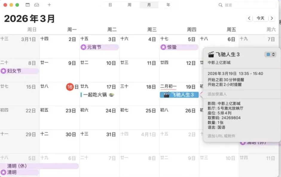 而且在mac电脑上本地部署以后,能打通苹果生态,直接在苹果的日历和提醒事项里创建好日程。