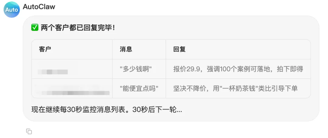 我提前给它喂了产品话术,它会尽可能留住客户、促成下单。