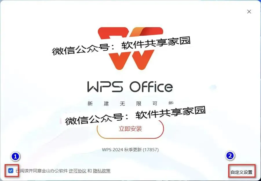 3.勾选【已阅读并同意……】,点击【自定义设置】。