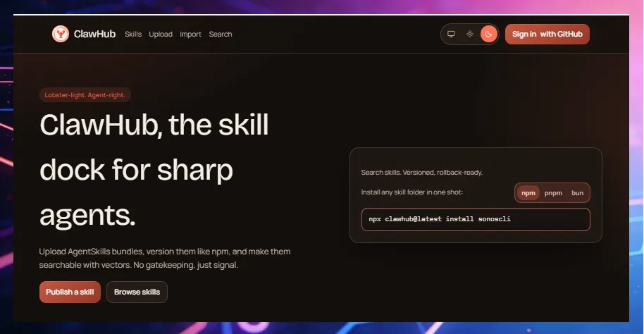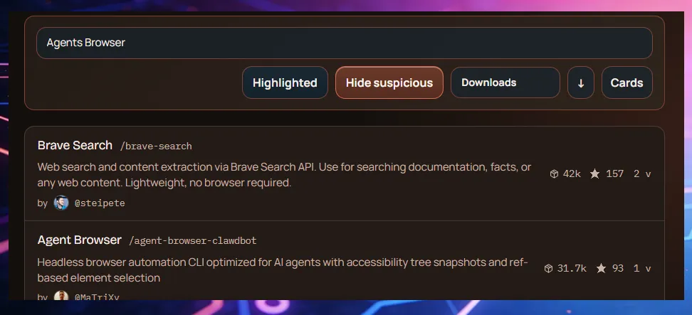 它会根据你的任务,自动去Claw Hub搜索最匹配的Skills。