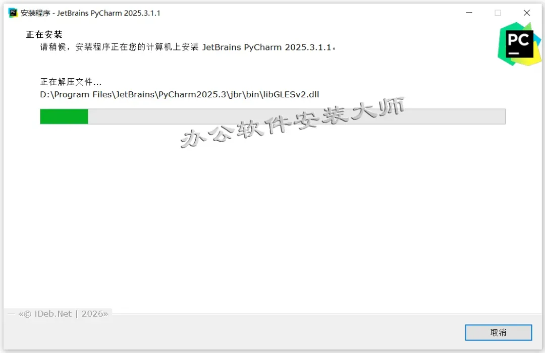 14.耐心等待 PyCharm 2025.3程序安装完成。