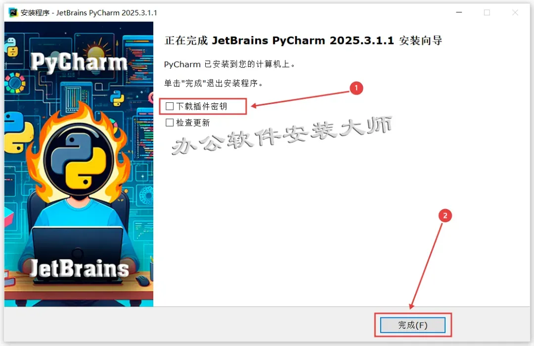 15.先取消勾选【下载插件密钥】,再点击【完成】。