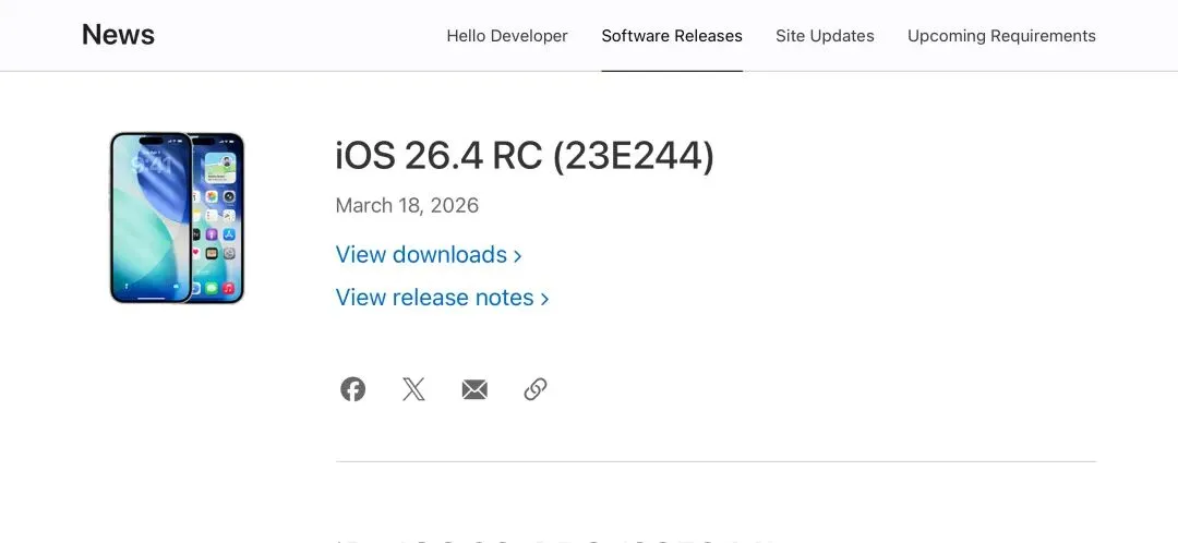 今日凌晨,苹果正式推送iOS/iPadOS 26.4 RC准正式版,作为正式版上线前的最终定稿版本。