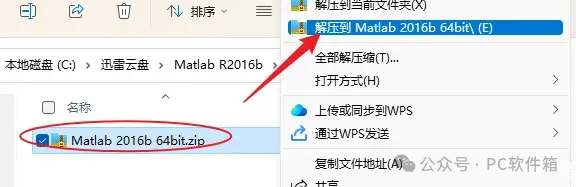 1.打开下载的【Matlab R2016b】文件夹,鼠标右击下载的【MATLAB R2016b】压缩包,选择解压到【MATLAB R2016b】。