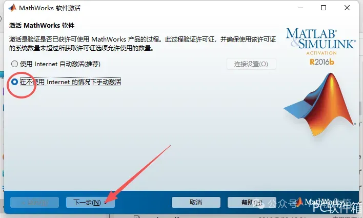 16.选择【在不选择 Internet 情况下手动激活】,然后点击【下一步】。