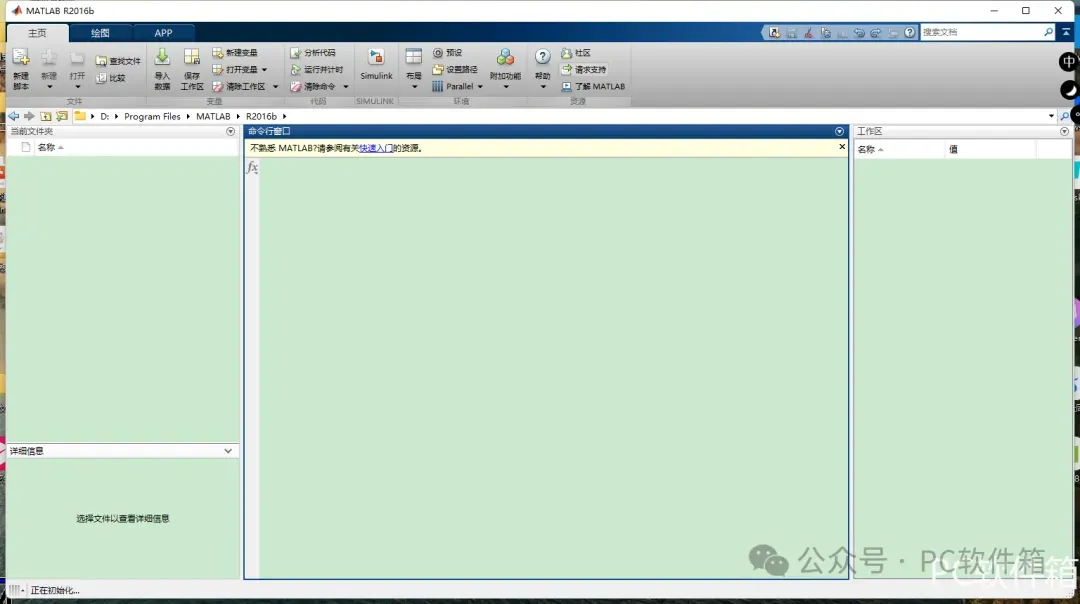 25.至此Matlab2016b 64位安装完成,打开界面如下。