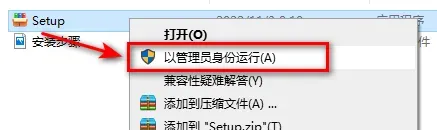 2.找到并选中Set-up,鼠标右键点击“以管理员身份运行”