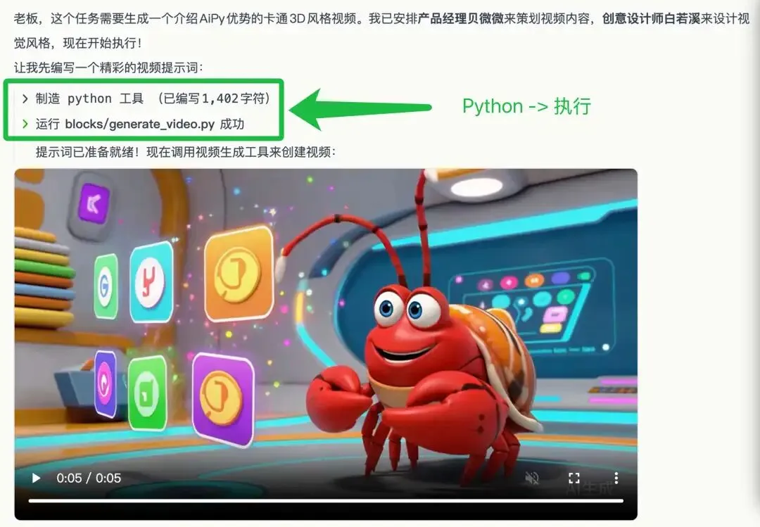 Aipy 处理任务的逻辑,是调用 Python(生成代码)再执行 的逻辑: