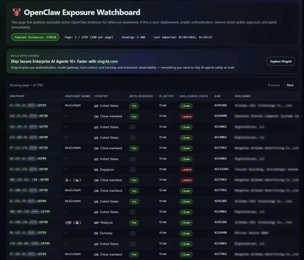 3月10日起,国家互联网应急中心(CNCERT)接连发布权威风险预警:全球公网暴露的OpenClaw实例超41万个,其中国内占比近6成、约23万个处于“裸奔”状态。工信部网络安全威胁和漏洞信息共享平台也发布“六要六不要”防范建议。3月17日,国家安全部发布《“龙虾”安全养殖手册》,提示用户可能存在主机被接管、言论被篡改等风险。