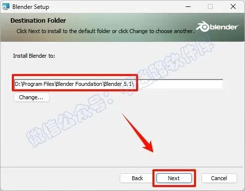 4.选择软件安装路径,建议和教程中的保持一致,本例安装到D盘(将路径地址中的首字符C改为D表示安装到D盘,安装路径不要出现中文),点击“Next“