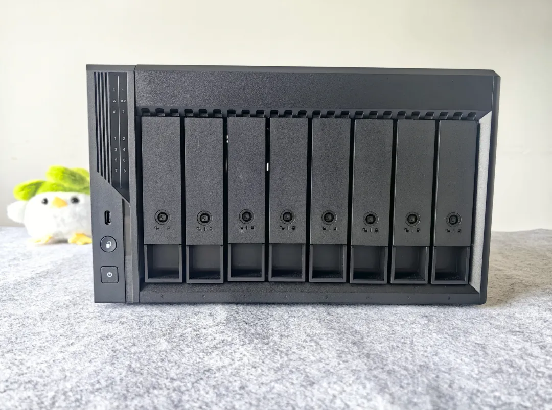 🔺此次为大家演示的NAS为威联通Qu805,作为威联通2025年推出的八盘位旗舰级NAS,威联通Qu805可以说是“同级别NAS的天花板”,单是i3‑N355处理器、8 盘位、16GB DDR5内存、双 2.5G网口、HDMI 的组合,就把性能、扩展性和性价比一起拉满。
