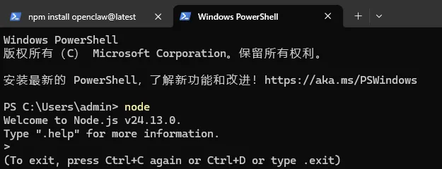 目前 openclaw 是使用 nodejs 编写的,需要有 nodejs 的运行环境这里可以先手动安装 nodejs 环境,避免出现网络问题无法继续下一步的安装。下载页面:https://nodejs.org/zh-cn/download