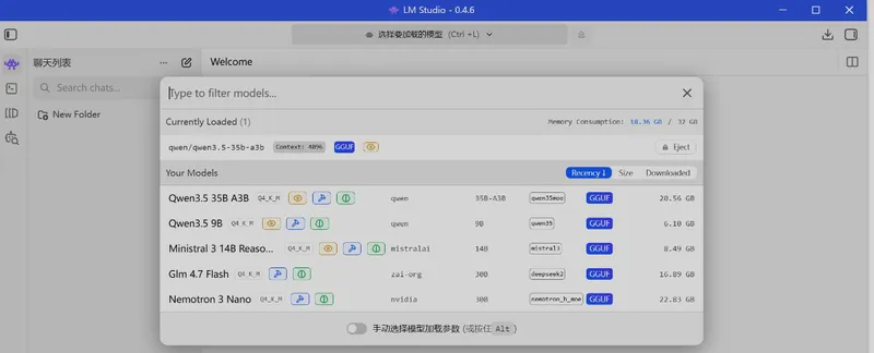 这里我推荐使用图形化软件 lmstudio,api 兼容 openai 与 Antropic,当然你也可以使用 ollama 来替代。