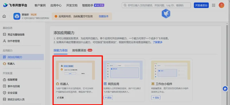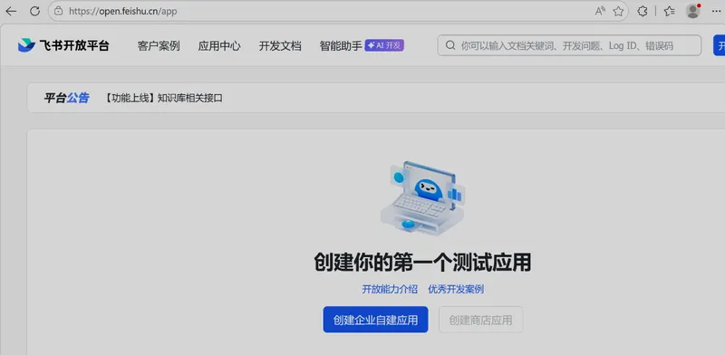 国内推荐飞书、国外推荐 discord这里我们使用飞书进行首先访问网站创建一个应用开发者后台 - 飞书开放平台[1]