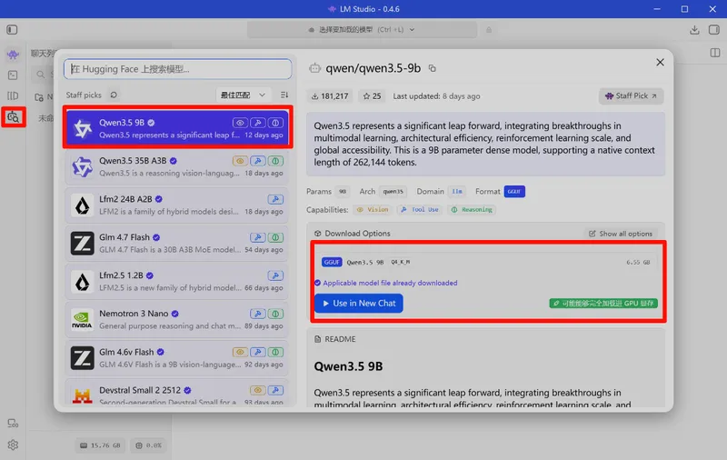 下载本地模型,我这里推荐使用 Qweb3.5 9B,你可以根据你机器的性能来选择你喜欢的模型