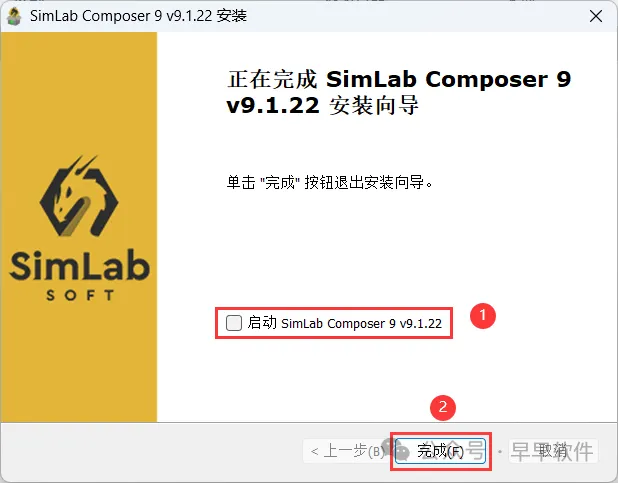 10、不勾选【启动SimLab Composer 9.1】,再点击【完成】