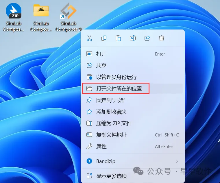 12、回到桌面,右键桌面上的【SimLab Composer 9.1软件图标】,点击【打开文件所在的位置】