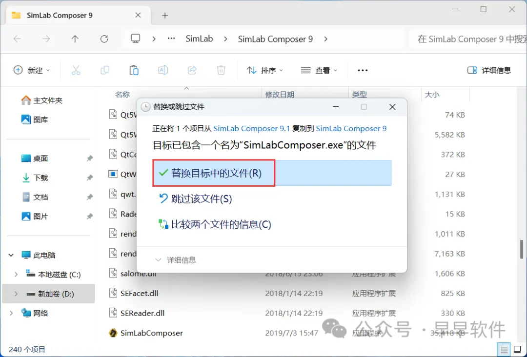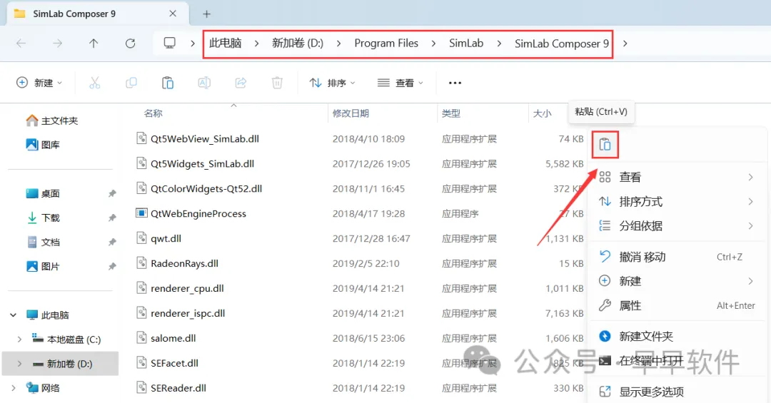 11、回到SimLab Composer 9.1文件夹,找到【SimLabComposer】文件,再右键点击【复制按钮】