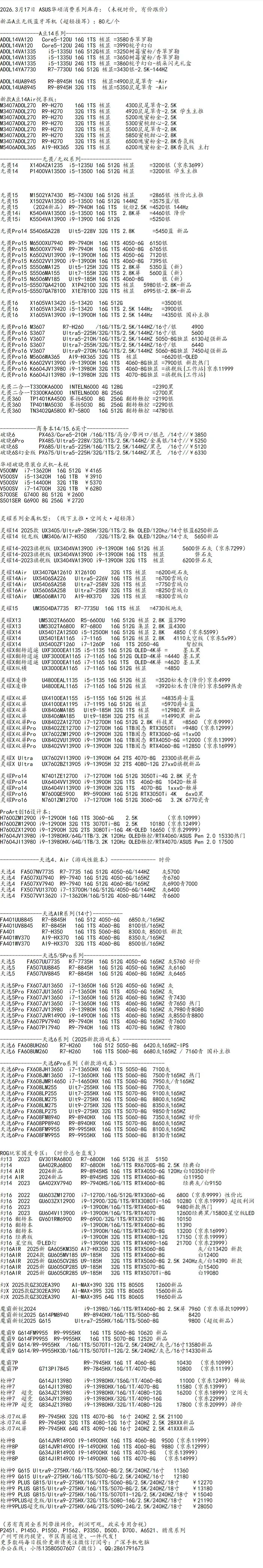 A豆、无畏、无双、顽石、破晓、灵耀、凌峰、天选、碉堡台式机、猎鹰一体机、玩家国度ROG系列…