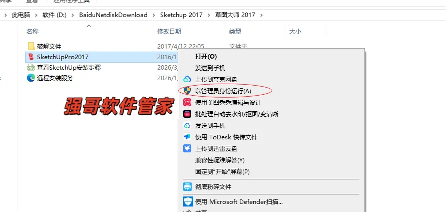 2.打开安装包,选中....2017.exe鼠标右键选择【以管理员身份运行】