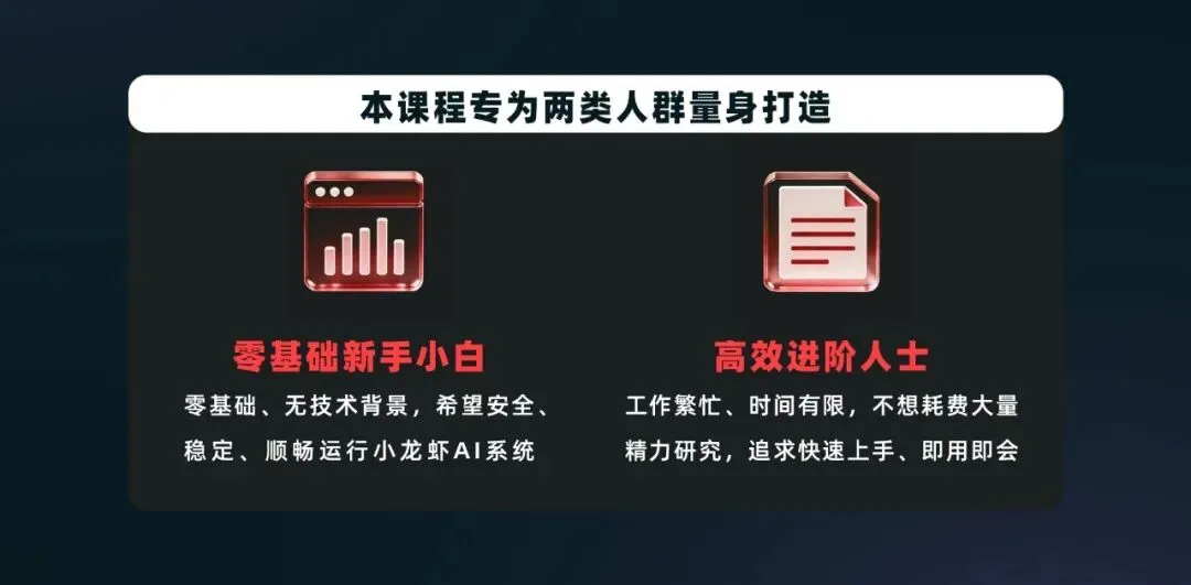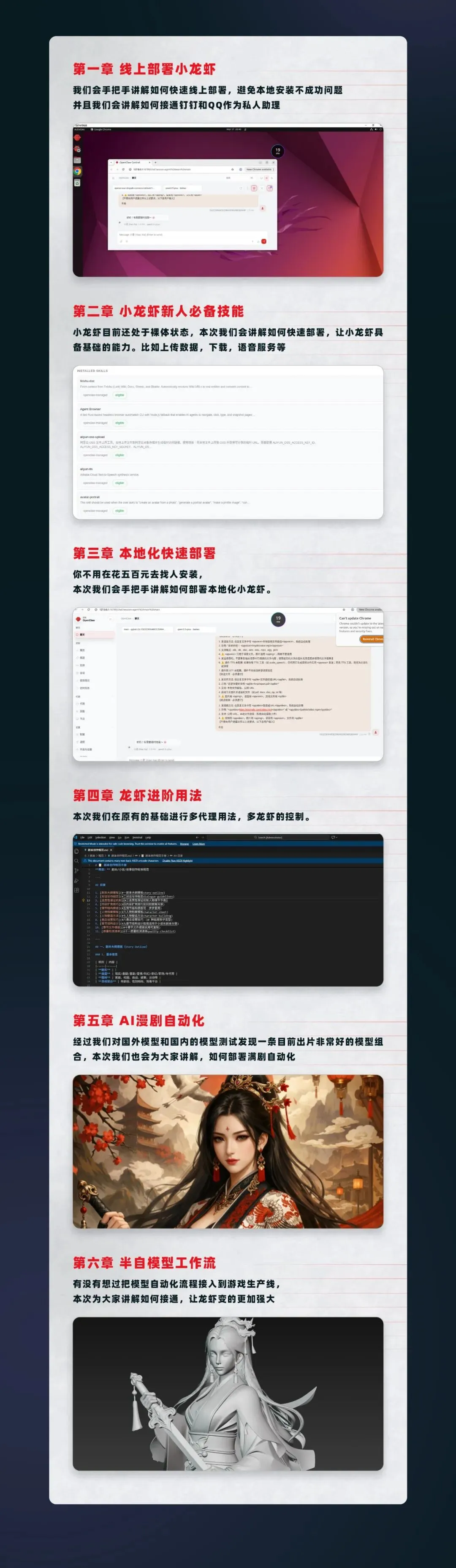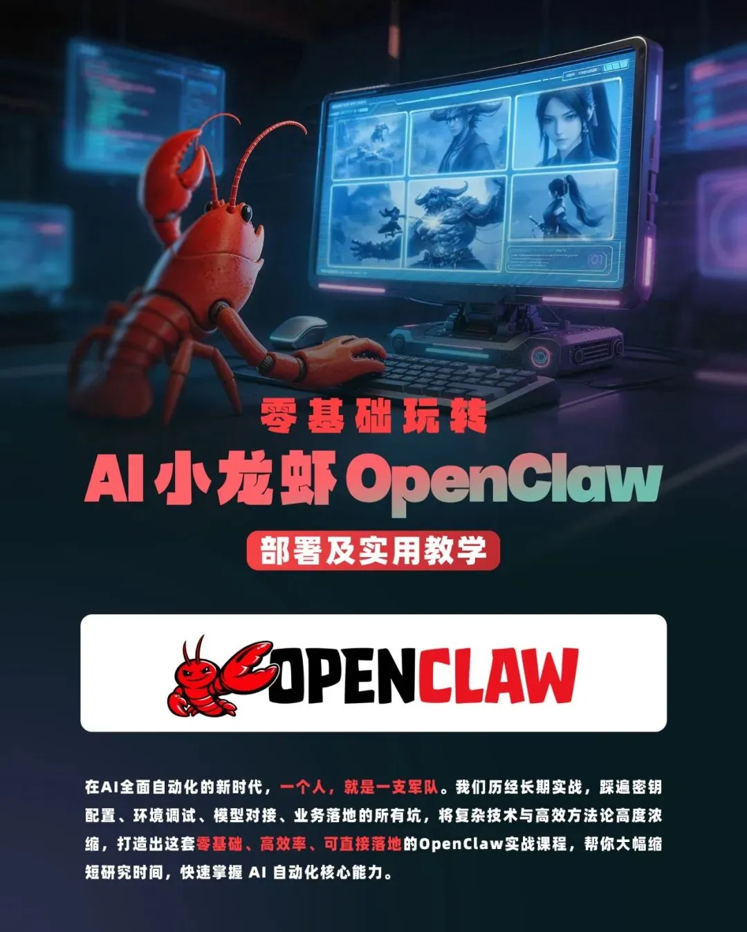在 AI 全面自动化的新时代,一个人,就是一支军队。我们历经长期实战,踩遍密钥配置、环境调试、模型对接、业务落地的所有坑,将复杂技术与高效方法论高度浓缩,打造出这套零基础、高效率、可直接落地的OpenClaw实战课程,帮你大幅缩短研究时间,快速掌握 AI 自动化核心能力。