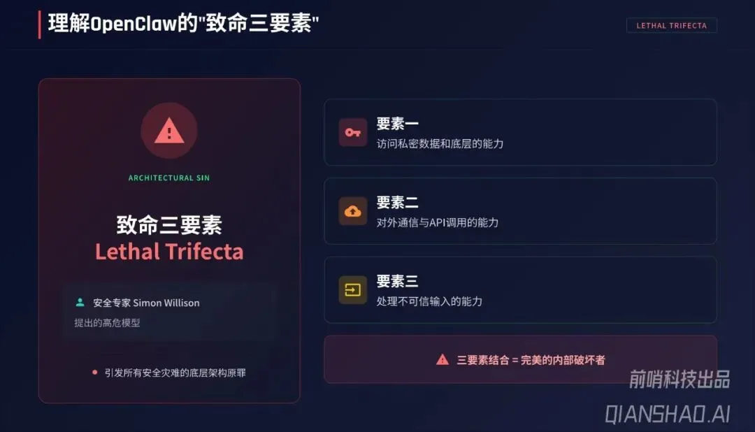 AI智能体已从对话式生成迈入自主执行新阶段,OpenClaw作为开源自托管的AI智能体网关,凭借连接大模型与现实世界、自主完成系统操作与业务流程的能力,成为智能体技术落地的典型代表,但其架构特性也带来了前所未有的安全隐患。该智能体具备系统底层访问、对外通信与处理不可信输入三大高危特性,叠加供应链投毒、提示词注入、记忆中毒、公网暴露、密钥泄露等核心风险,已引发多起远程代码执行、数据窃取等安全事件,被多国监管机构与科技企业列为高危管控对象。