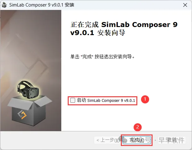 10、不勾选【启动SimLab Composer 9.0】,再点击【完成】