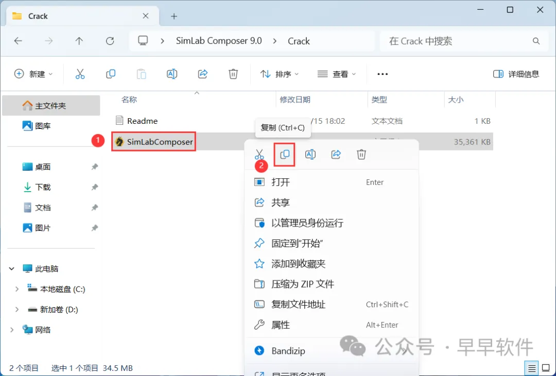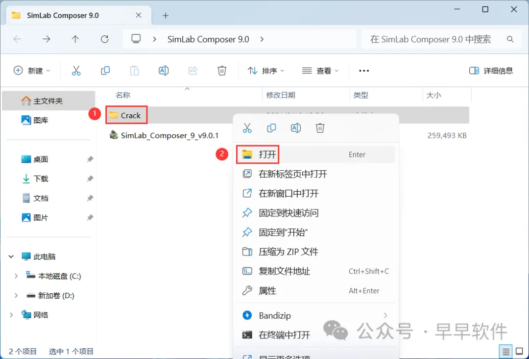 11、回到SimLab Composer 9.0文件夹,找到【Crack】文件夹,右键【打开】它