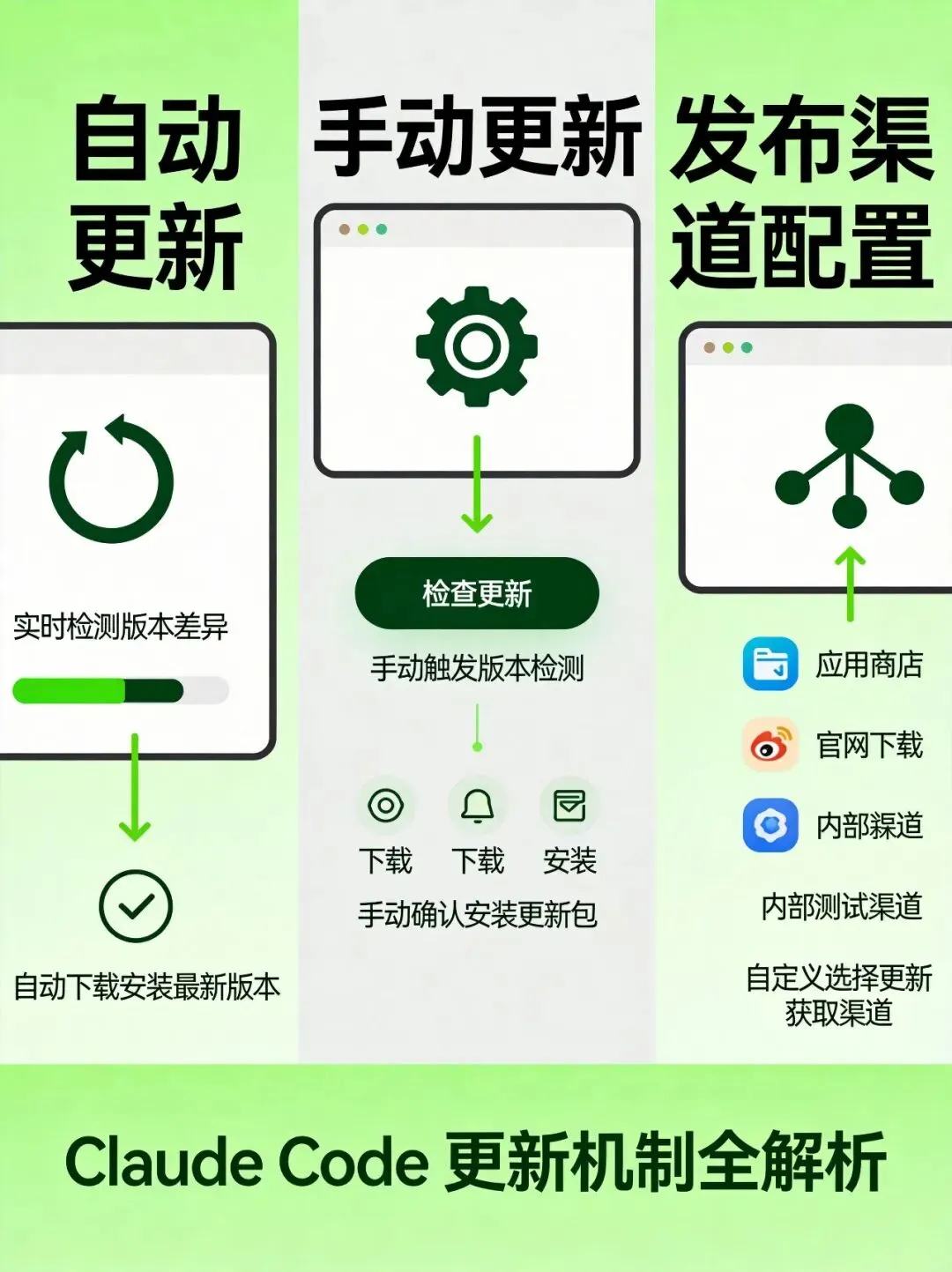 自动更新、手动更新和发布渠道配置