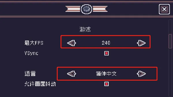 2、在语言设置位置,将语言切换为简体中文即可,除此之外最大FPS值还可设置为最大值,以获得更高的流畅体验;