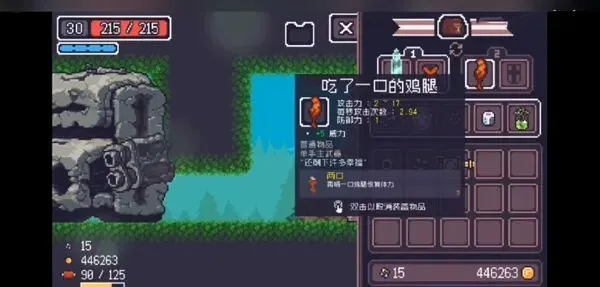 2、然后,地牢方面有着恶魔城一样的地图房间设定,还有贴心的房间传送功能。每次进入都是随机的地图,但是有几处是固定的。每层都有武器商人和食品商人,食品每层只能吃一次获得一个buff。