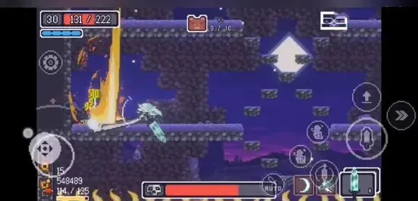 3、游戏采用了横版移动操作,屏幕左边轮盘控制角色移动,右边则为攻击、跳跃、冲刺等键位;