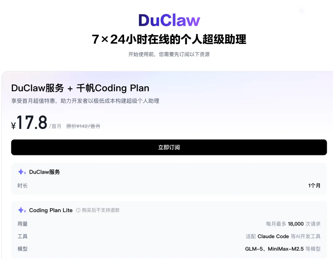 目前,DuClaw网页端服务已上线。后续还将陆续支持企业微信、钉钉、飞书等应用。