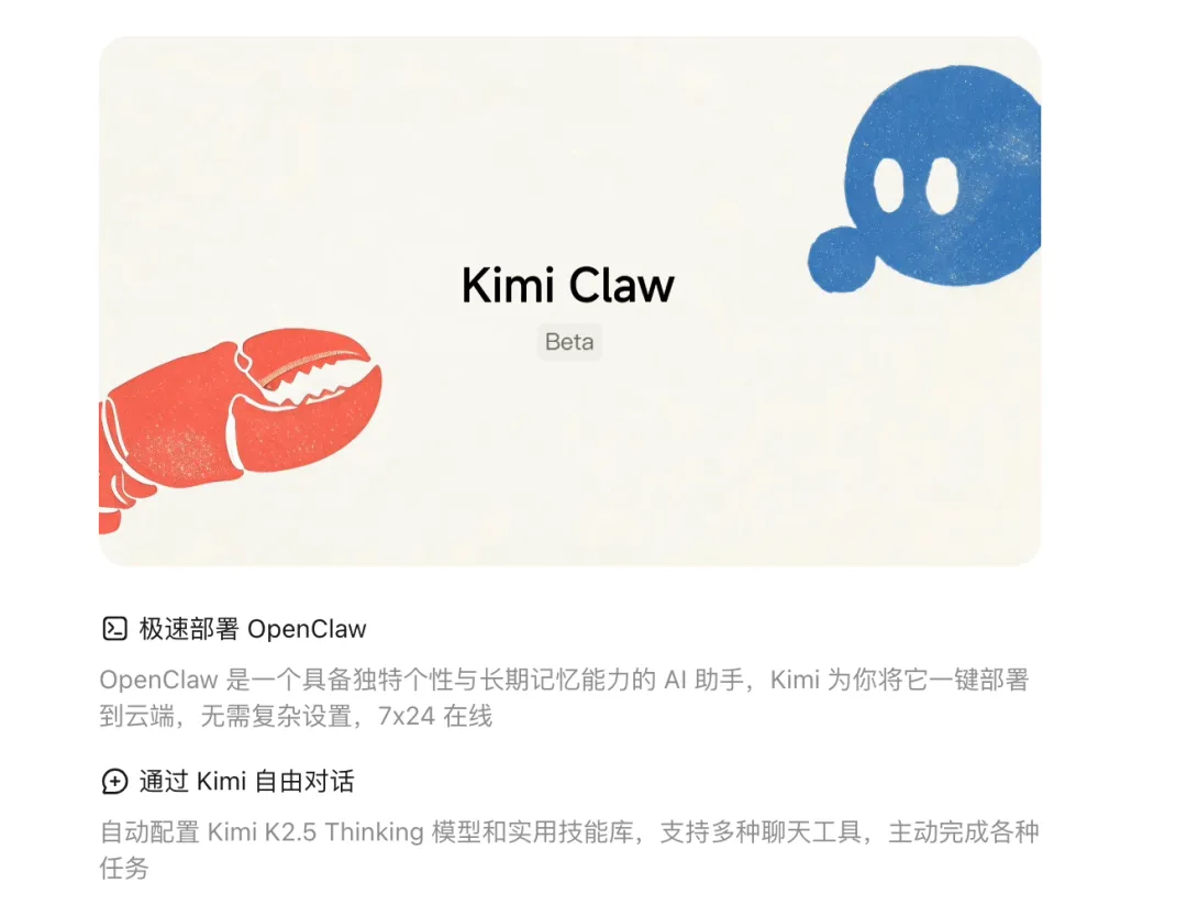 它本质上就是一台为用户远程开好的虚拟机,让用户通过 Kimi 直接访问运行在云端的 OpenClaw 环境。