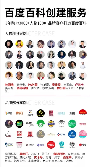 帮助10万个CEO建立百度百科,提升网络知名度,目前已完成8000+