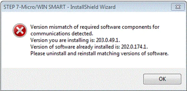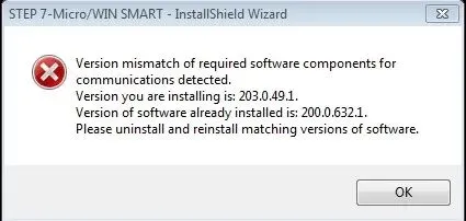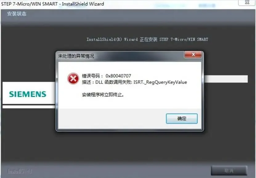 S7-200 SMART安装中止或者报告DLL函数调用失败如图2所示: