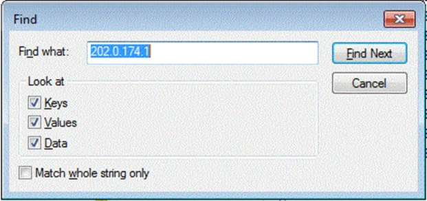 3. 使用CTRL+F打开查找界面,点击“Find Next”搜索“202.0.174.1”