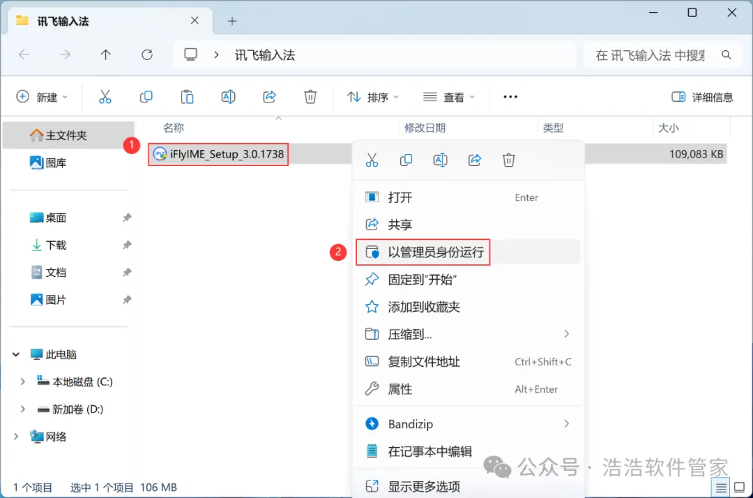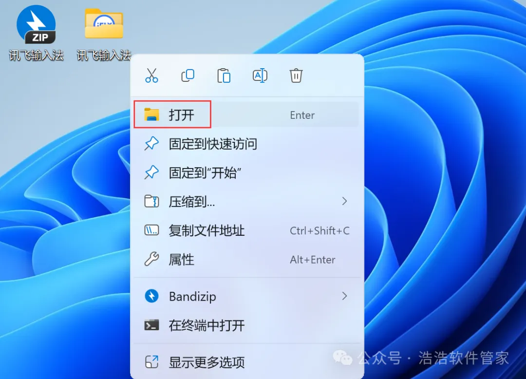 1、下载讯飞输入法软件安装包到电脑上,右键选择【解压到讯飞输入法\】