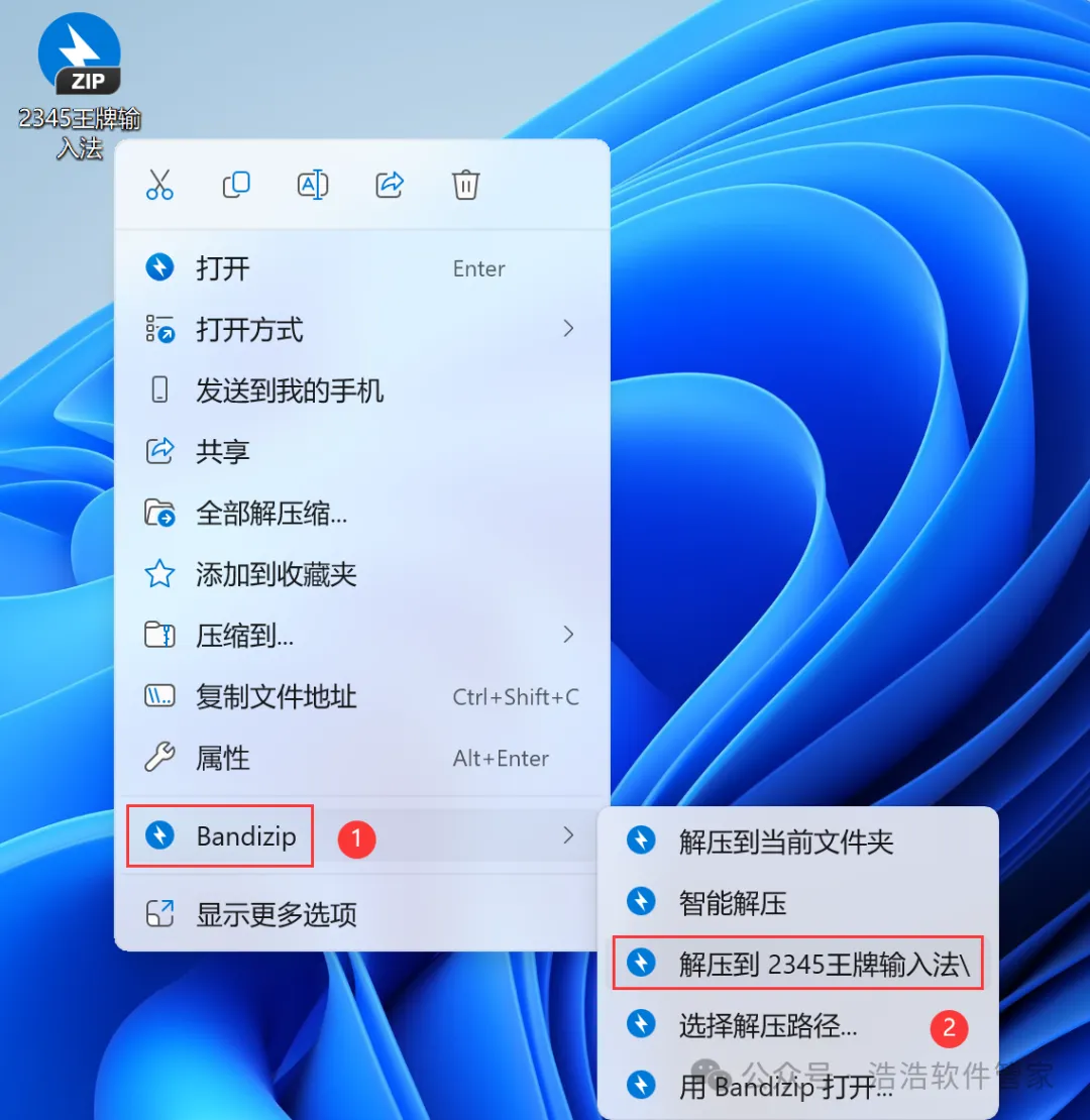1、下载2345王牌输入法软件安装包到电脑上,右键选择【解压到2345王牌输入法\】