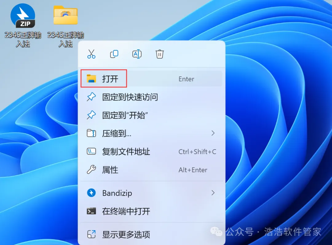 2、右键【打开】解压后的文件夹
