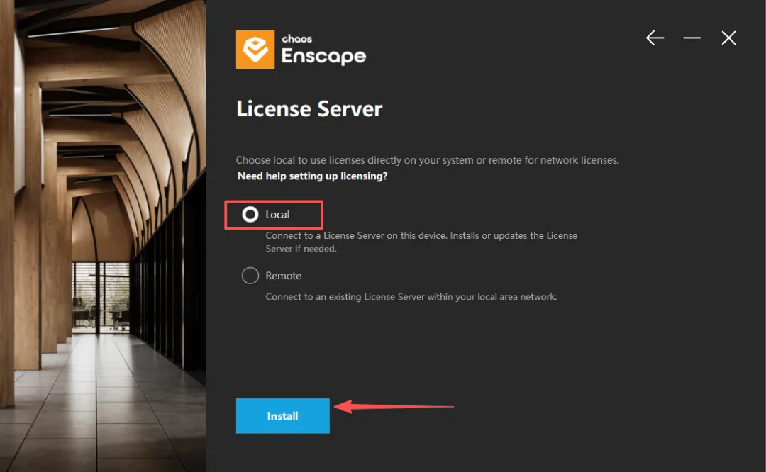 7、默认选择Local,然后点击Install