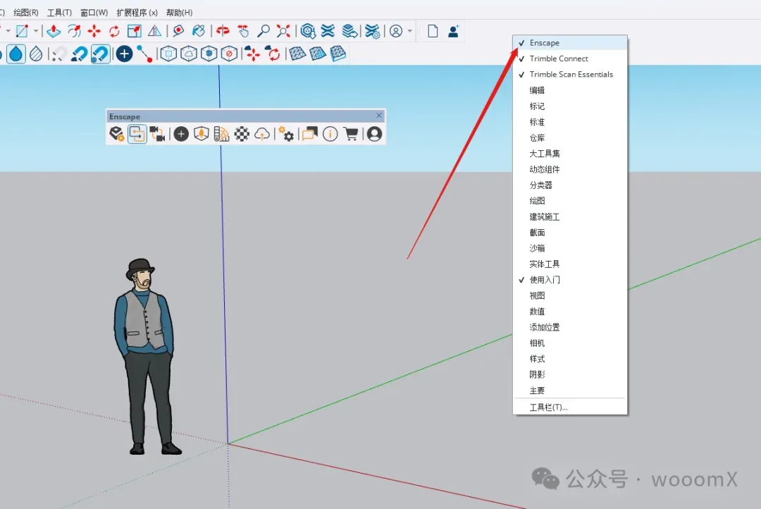在SketchUp工具栏空白处右键,点击 Enscape 就会弹出工具栏