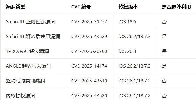 如果你当前系统版本在 iOS 13.0 至 iOS 17.2.1 和 iOS 18.4 至 iOS 18.7 系统,千万不要乱点来历不明的链接,不然被盗取信息就麻烦了。不太关注越狱或者修改等玩法的,建议更新最新系统,毕竟新系统已修复此漏洞。